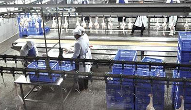我公司年收購、屠宰、加工肉食雞2500萬只,年產(chǎn)產(chǎn)品6萬余噸,銷售收入近6億元,實(shí)現(xiàn)利稅2000余萬元。帶動3500戶農(nóng)民養(yǎng)雞致富,安置農(nóng)村剩余勞動力和下崗職工600余人就業(yè),間接帶動4000人發(fā)展肉食雞產(chǎn)業(yè),年可創(chuàng)社會效益近億。